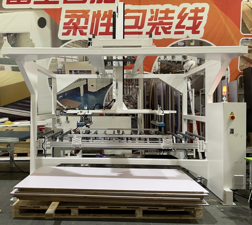 5. Syklisk operasjon: Løftetplattformen til fôringsstativet stiger gradvis når gripen fortsetter for å holde gripende overflatehøyde stabil. Når alle paneler på pallen blir behandlet,